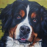 2009Sam, deze prachtige benner senner is heel closup gevat in het doek. Wat een lief dier. Een lust om te portretteren!